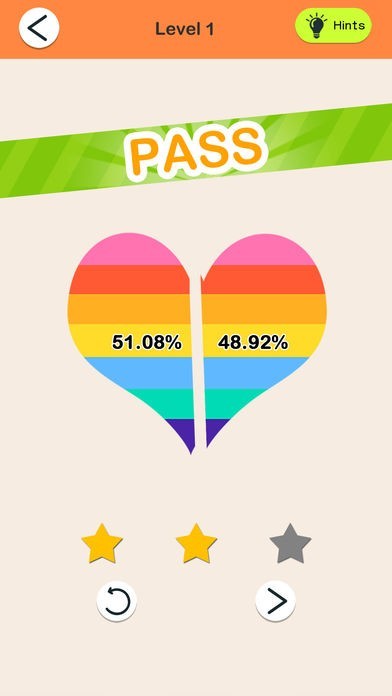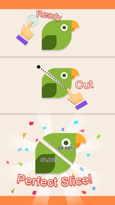 App Storeより引用In each level, there is a regular shape, you just need to cut it into equal two or four slices. The more close the area of the slice is, the more stars you can get!