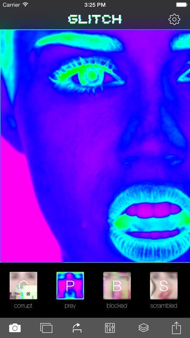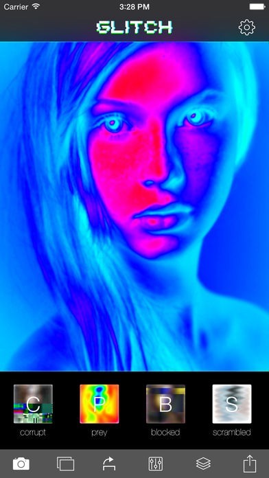 Take a photo and shake your device for quick glitching, or select a glitch mode and tweak the settings -- absolute glitching power corrupts absolutely!