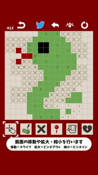 複雑なルールなどは一切なく色付けするマスを探すパズルゲーム