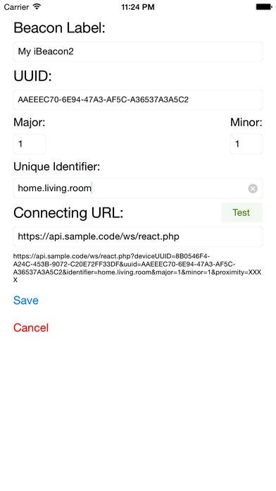 To use this app, simply add a beacon with the relevant information and provide the web service URL to call.
