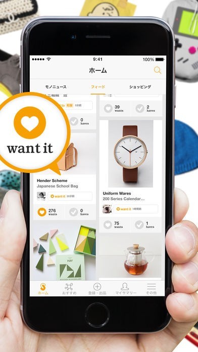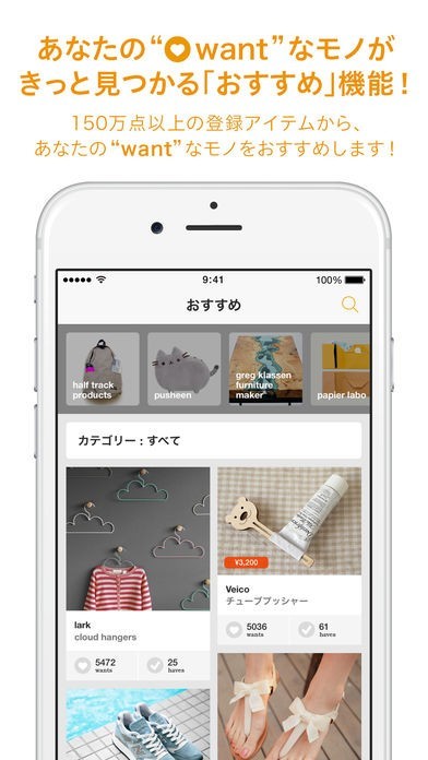 あなたが欲しいと思ったものから、関連するアイテムがどんどん紹介されるので、毎日たくさんの素敵なモノ達に出会えます。また、人気アイテムをおすすめする機能もあり、思いがけない"want"が見つかるかもしれません。