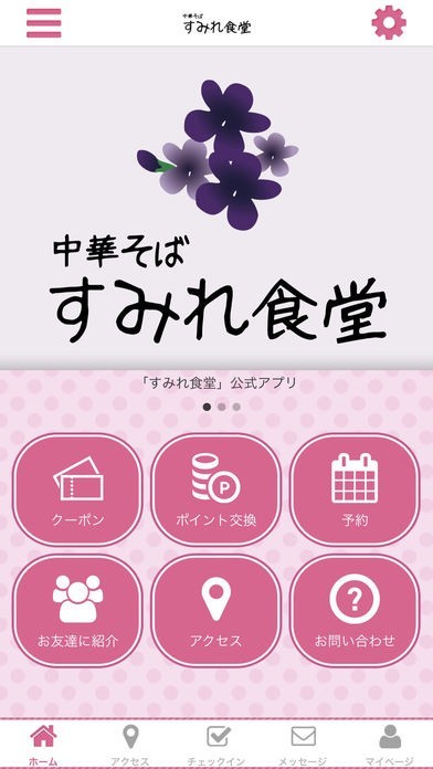 このアプリでは、すみれ食堂の最新情報の受け取りや便利な機能を使う事ができます。