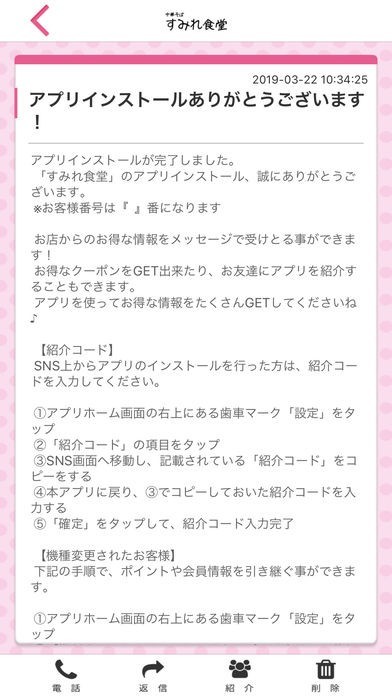 すみれ食堂のアプリをSNSを通じてお友達に紹介する事ができます。