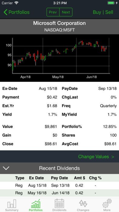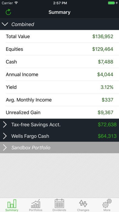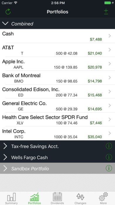 Portfolios may be shared across multiple devices and viewed on our secure web site. The app provides a free unlimited one month evaluation and supports over 5,000 dividend paying stocks listed on both the US and CAN stock exchanges.