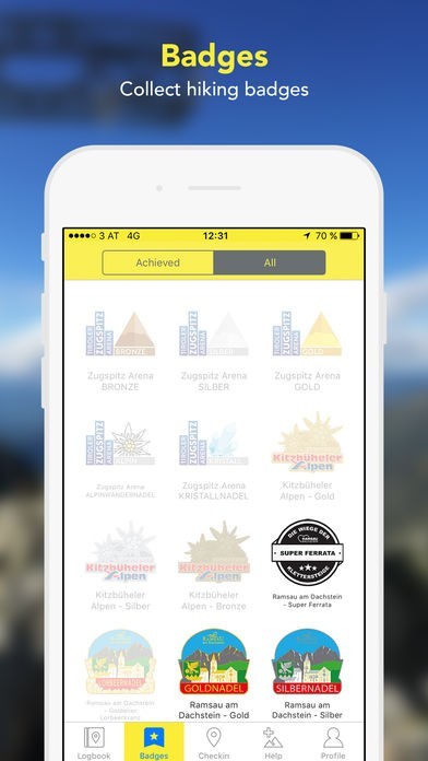 欧州アルプスからの大流行、バーチャル登頂記録帳が今スマホに登場。GPSを使って世界中の山頂や登山地域の位置情報にチェックインし登頂したことを記録できます。