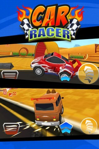 "カーレース"は、愛車のカスタマイズから、レースやドライブなど、多様な遊び方ができるカジュアルゲームとなっています。レースモード・フリードライブモード・車体カスタマイズモードの3つを収録しており、車体のカスタマイズをする所からゲームをスタートします。好みのボディやエンジンなど、あらかじめ用意された手持ちのコインを利用して、各パーツを購入します。愛車が完成したらレースモードかフリードライブモードで早速プレイします。レースモードでは速さを競い、フリードライブモードでは、ジャンプ台や360°スロープでアクロバティックな操作を楽しむ事ができます。操作テクニックに自信がなくても、思いのままに楽しめ爽快です。また、愛車を"TVコマーシャル"に出すこともでき、粋なCMを楽しむなど、多様な遊び方が充実しています。カスタマイズのセンスやドライブテクニックがポイントと言えそうです。
