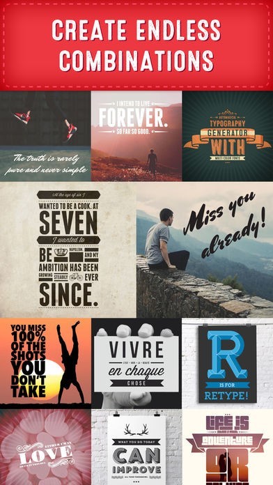 印刷物やインターネット上の画像などで読みやすく、美しい、アーティスティックな文字列を配置したいと思う全ての人が使えます。レイアウトを簡単にタップするだけで選択して仕上げることができます。
