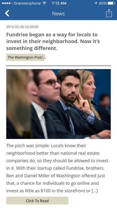 1つのニュースはニュースタイトル、概要文、小さなサムネイル画像がセットになったリスト表示となっており、タップすることで、そのニュースの詳細画面に遷移する仕組みになっていて読みやすい仕様になっています。
