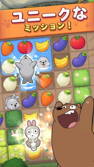 ぼくらベアベアーズは、3つ以上同じピースを揃えて消していくパズルゲームをして、ストーリーを進めていく