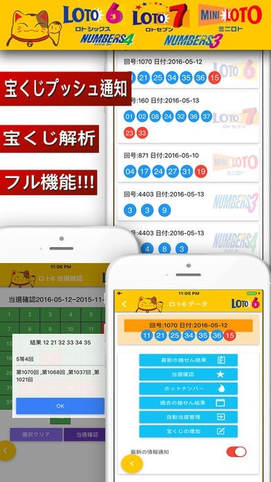 自動当選確認機能が搭載しているので、自分が購入した宝くじの数字をあらかじめ登録しておくことで抽選速報が出たら自動的に当選を確認してくれるので、手間なく結果を確認出来ます。