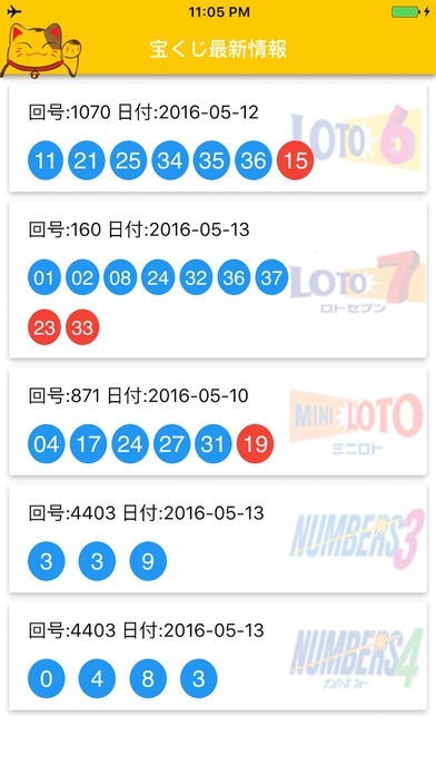 宝くじ速報 ロト7 ロト6 ミニロト ナンバーズ 3 ナンバーズ4 結果のスクリーンショット