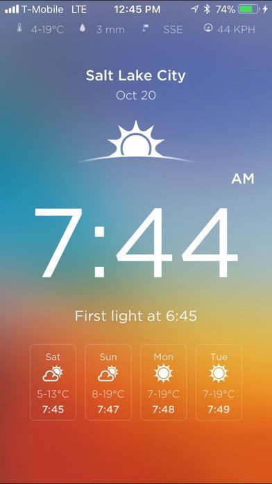 3. Weekly view. Tap the app once to see the sunrise/sunset times for the next 4 days.