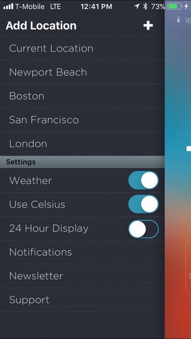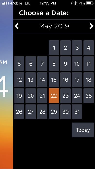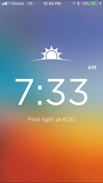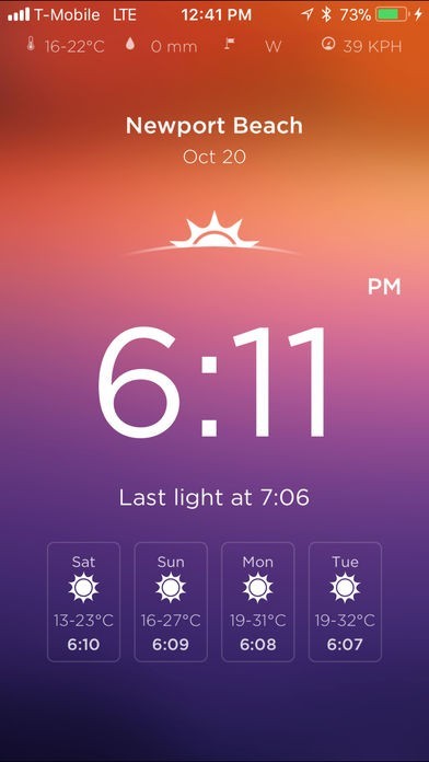 2. Beautiful swipe implementation to see the times. Follow the dark purple color with your thumb to see the sunset time appear.