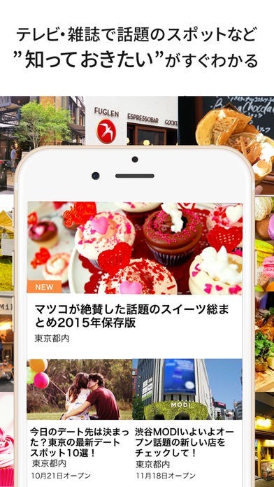 テレビや雑誌で紹介された話題のスポット情報を中心に、全国のおでかけ・外出情報を取り扱っており、よく行くエリアや性別・ライフスタイルに最適化した情報をお届けします。