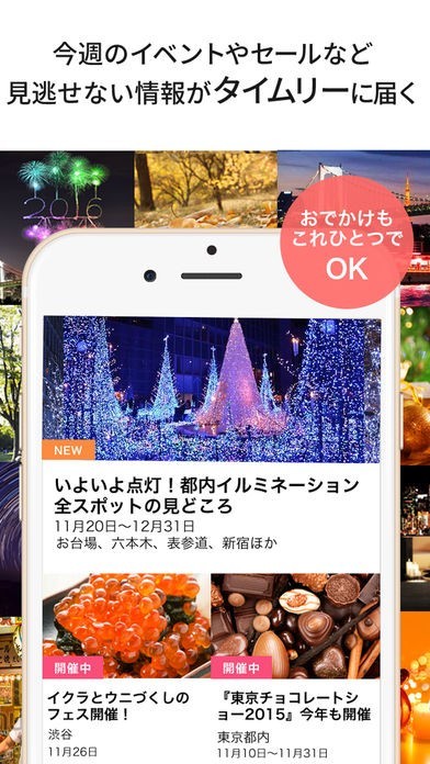 週末の予定やカレンダーがすぐに埋まってしまうような、おでかけしたくなる情報を配信します。