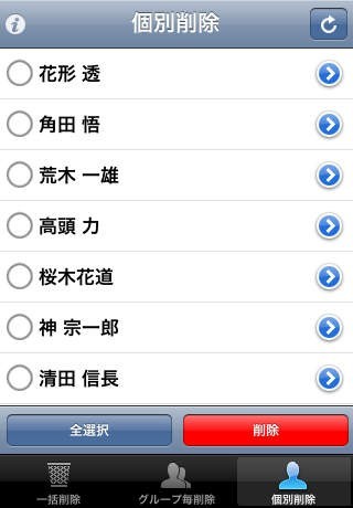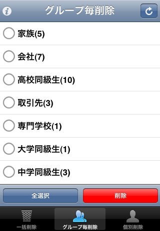 連絡先一括削除のスクリーンショット