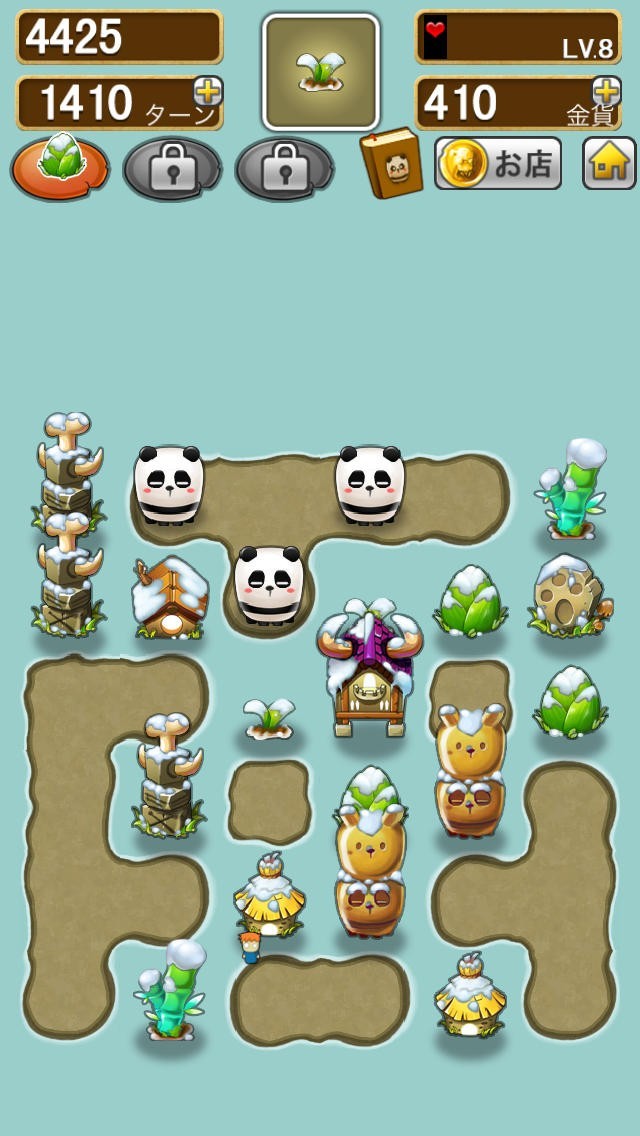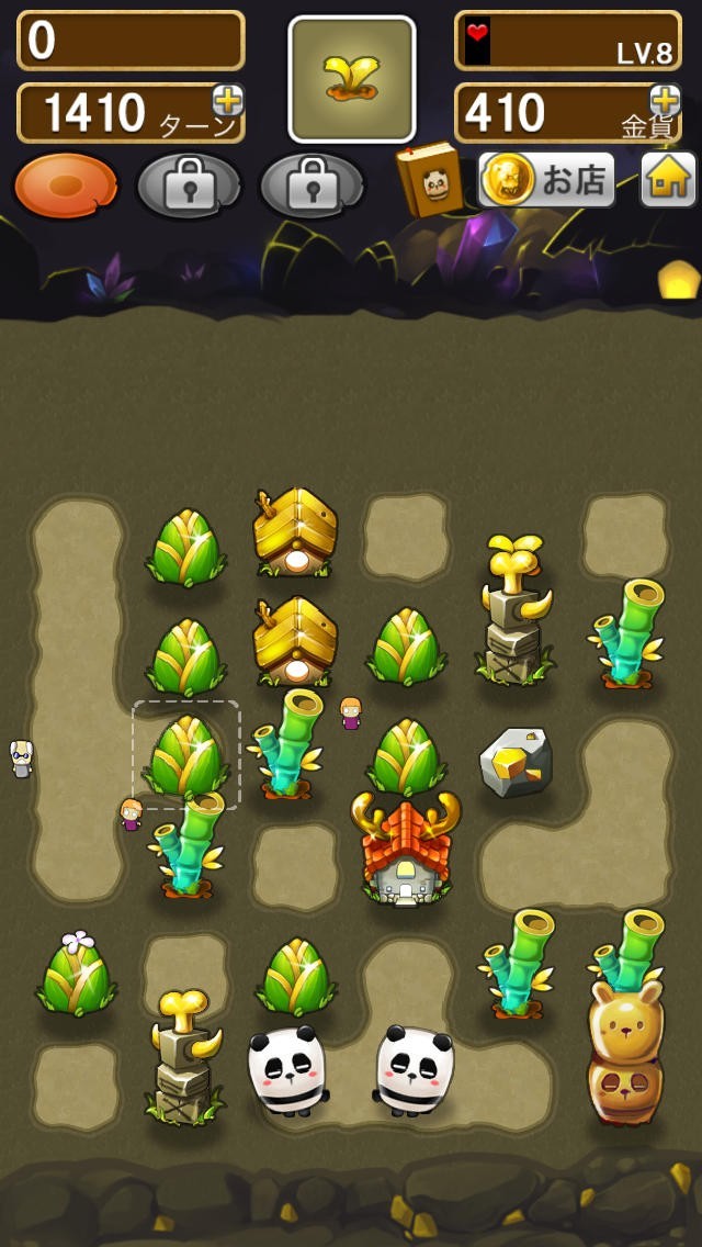 たけの森は、ちょっと変わったタイプのパズルゲームです。同じ図柄や形のピースを繋げて消して、ステージ上の障害となる物の一掃を目的とする、一般的なパズルゲームとは違い、たけの森の目的はパズルによる森の発展にあります。森に並ぶ様々なブロックの中から、同じ絵柄の三つのブロックを揃えて、ランクの高いブロックへと進化させましょう。ブロックの進化を続けていくと、たけの森を初めとするステージは豪華なもので飾られた豪華な空間になります。壁紙を替えたり新しい置物を増やしたりとしながら、素晴らしい森を完成させていきましょう。