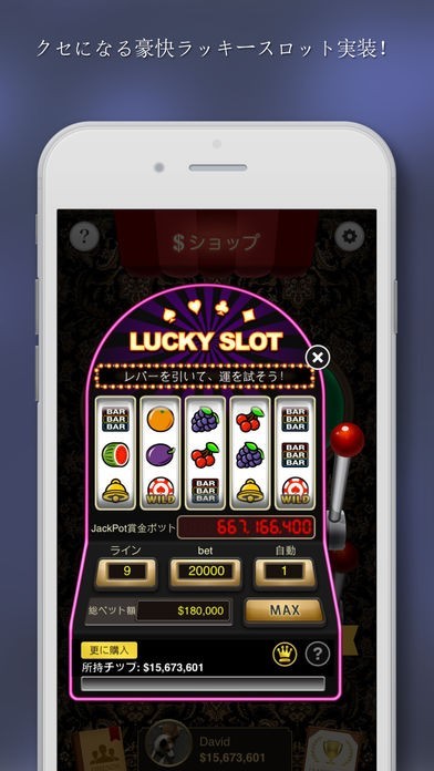 ポーカー以外にスロットゲームで遊ぶことができます。全9ラインのスロットが用意されていて、ポーカーに使うチップを稼ぐことができます。ランキングでスロットの結果も競えます。