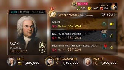 「Pianista」のルールは簡単。音楽に合わせてタイルが降ってくるので、タイミングよく画面をタップして下さい。演奏できる楽曲は初心者向けの簡単な曲から、超絶技巧を要求されるハードな曲まで、幅広く取り揃えています。