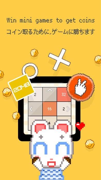 ・2048:数に加わりましょう!あなたのタイルに128を追加する度、コイン1枚を獲得する事ができます。