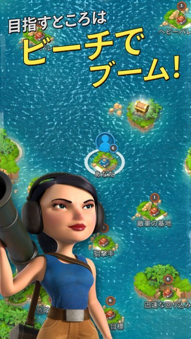 「ブーム・ビーチ (Boom Beach)」は、邪悪なブラックガード軍に占領された島を戦術を駆使して打破し、島民たちを助け出す戦略系バトルゲームです。世界各国の多くのプレイヤーと共にタスクフォースを編成し、ブラックガード軍を責めます。まず、島の資源を発掘し資金を作り、その資金をもとに砲台など武器を揃えましょう。南国の島に潜む謎を解いて、命のクリスタルの力を開放するなどバトル以外のゲーム要素もあるので、ライトユーザーやバトルゲーム初心者の方も楽しめるゲームです。