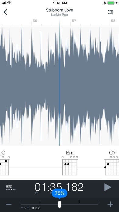 全体のスピードをスローにしてから、スクラブ操作で特定の音をチェックしたり、ループリージョンを作成したりして、曲のトリッキーな部分を練習できます。 Capo のツールを使って特定の楽器やボーカルを消し、曲の任意のパートを練習できます。 2 つのシンプルなスイッチを使って、ピアノに集中したり、他をすべて消してギターソロだけを練習したりできます。