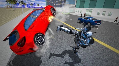 出てくるロボットがすべて最新型の変形タイプという超絶カッコいいバトルゲーム。バトルの場として選ばれたのは高層ビルが建ち並ぶ未来都市です。犯罪組織のロボット軍団に正義の鉄槌を撃ち込みましょう。