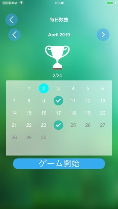 カレンダーを参照していつパズルを解いたのか簡単に確認することができるようになっているので、ゲームをプレイしていくうちに自然と毎日の勉強を続けていくことができます。