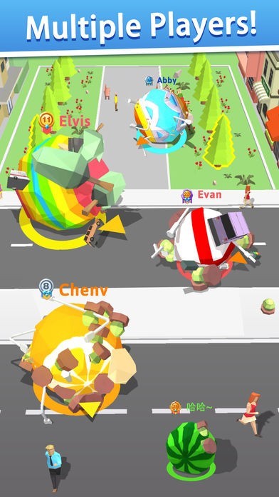 世界中の人達と対戦することもできるようになっています。同じマップ内に集まり、時間内に誰が一番大きなボールを作れるかを競うものです。対戦において重要なのが相手よりも大きければ相手を吸収できるという点です。吸収された相手は復活に時間がかかります、相手を倒しながら大きなボールを目指しましょう。