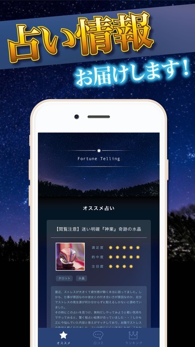 実際に占いを利用したユーザーによる口コミ情報が掲載されているので、自分が使う前に評判を確かめる事が出来てしまいます。満足度や注目度が一目で分かる、大変便利な機能となっています。