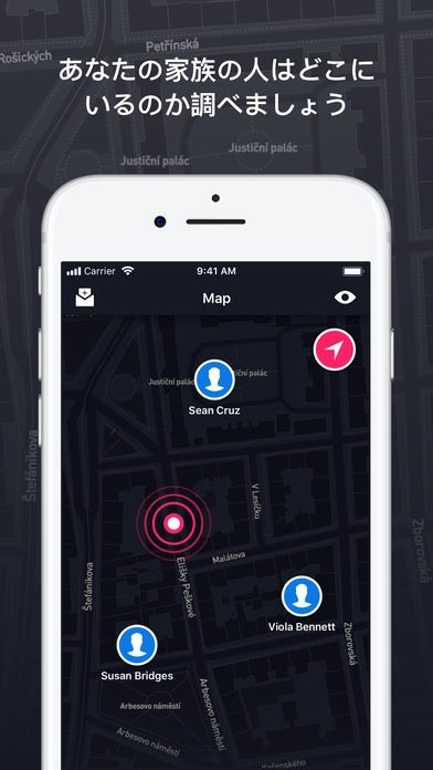 地図上から子どもや友人の居場所が分かる