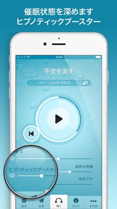 「このアプリ、大好きです。最高! 1回聞いただけで、もう不安感は和らぎました。 寝る前にこのアプリを聞きながら眠りに就くのが楽しみです。皆にお勧めします!」