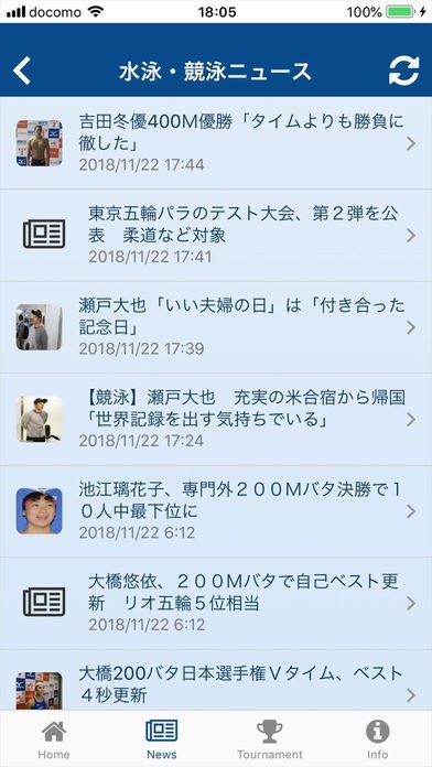 App Storeより引用水泳・競泳競技の最新ニュースから全国各地の大会結果まで掲載中!!