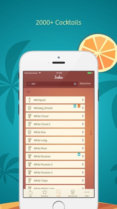 App Storeより引用Mit Cocktails lassen sich mehr als 2'000 Rezepte aufrufen! Komplett werbefrei! Einfach und schnell!