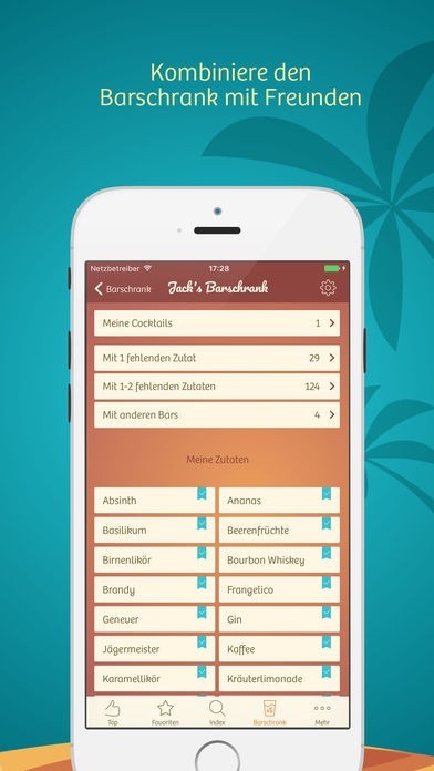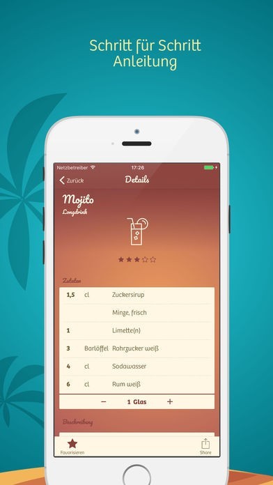 Der Detailbereich enthält alle wichtigen Informationen, um den entsprechenden Cocktail zusammen zu mixen.