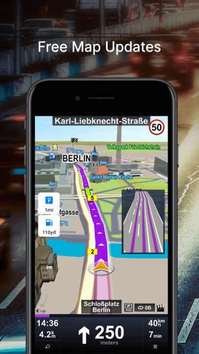 無料の地図更新やリアルタイム交通情報、速度制限と速度警告などナビゲーションだけでなくドライバーをサポートする多数の機能を搭載しているオススメのナビゲーションアプリとなっています。