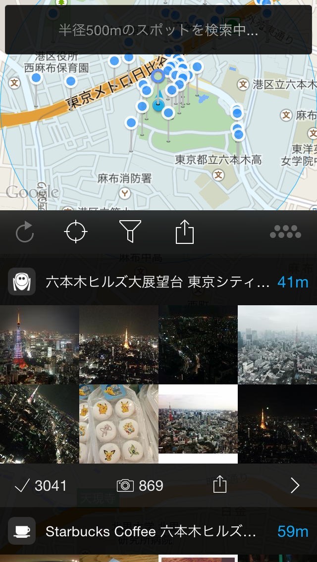 スポットの写真を一覧で見れるので、周りにある面白いスポットが一目で分かります。