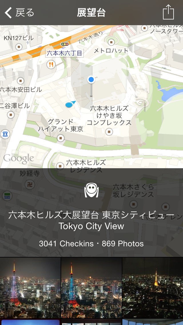 同時にスポットのチェックイン回数とアップロードされた写真の枚数で人気度が確認できます。