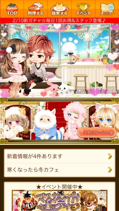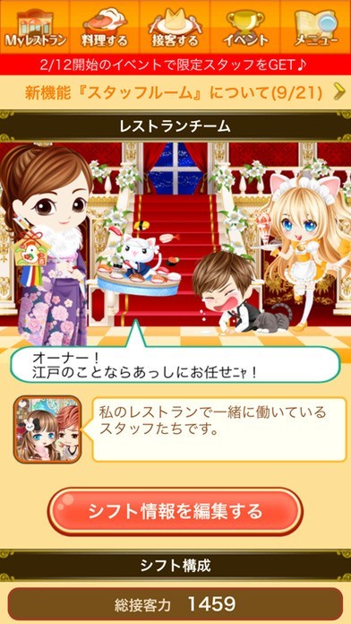 【掲示板】で交流したり、【プレゼント】を送りあったりして、みんなで一流レストランを目指しちゃおう□