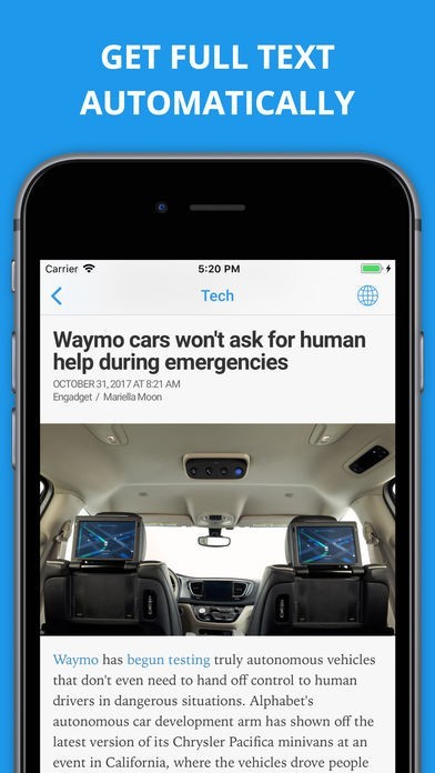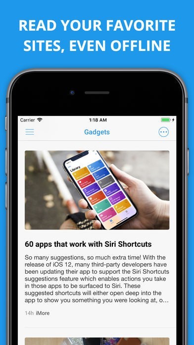 feedlyが有名ですが、こちらのアプリはよりシンプルで使いやすくわかりやすいです。細かい設定が英語で書かれているのでそこがマイナスポイントです。