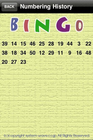 App Storeより引用Bingo番号抽選器