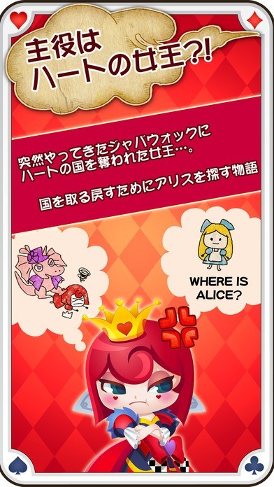 ハート国を治めるハートの女王は、ワンダーランドに現れた怪物「ジャバウォック」によって国を追放されてしまいました。