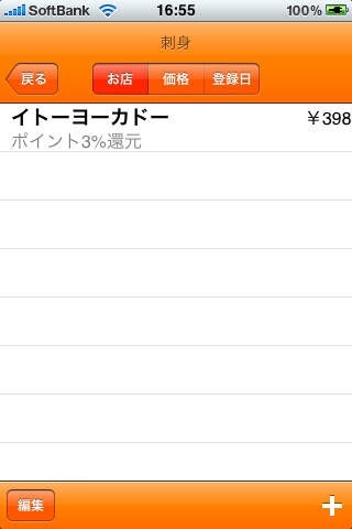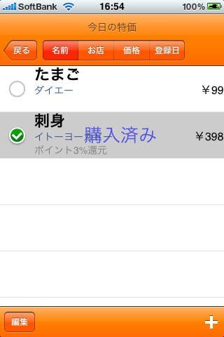 並び替え機能を搭載しています。作成したリストは商品名や店名、登録日などで並び替えることができます。もっとも新しく登録した商品を確認したい時にも、並び替えが役立ってくれます。