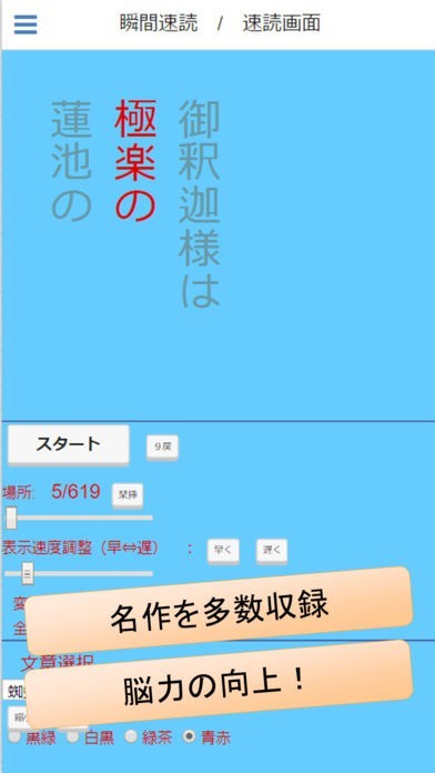 App Storeより引用様々な名作小説を速読できるアプリです。