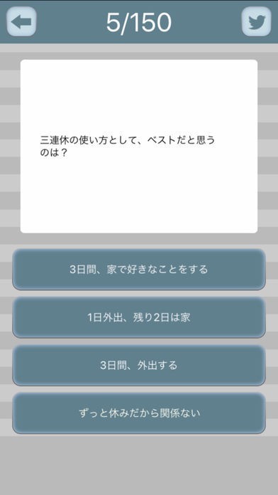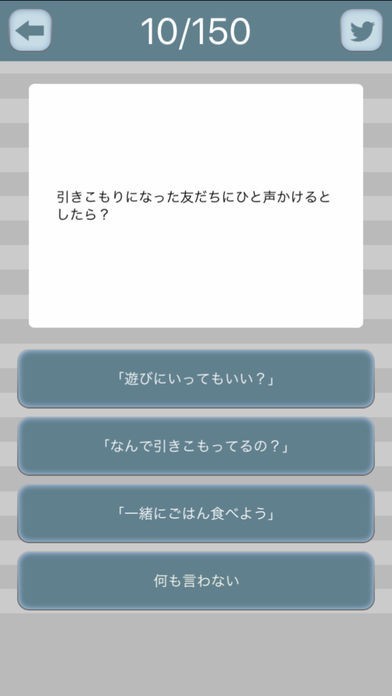 "引きこもり"にまつわる質問が出題されるので4択の解答の中から