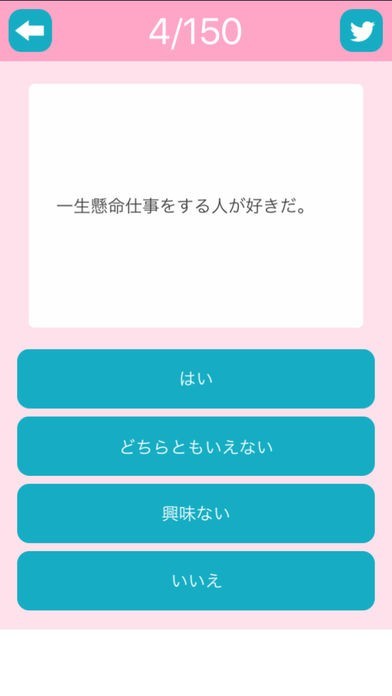 4択の質問に答えていくという簡単な操作で診断できるためお手軽に利用できます。それでいて核心を突くような答えを出してくれるため新たな発見をすることができるという点も魅力です。
