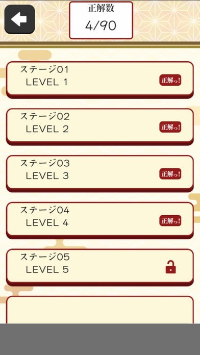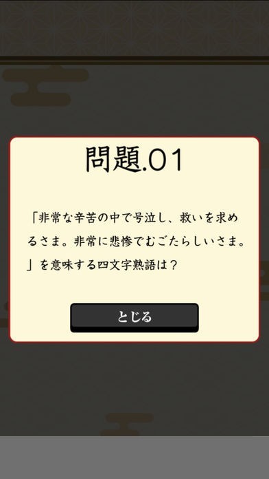 問題文には、そのステージで探す四字熟語の意味が表示されます。