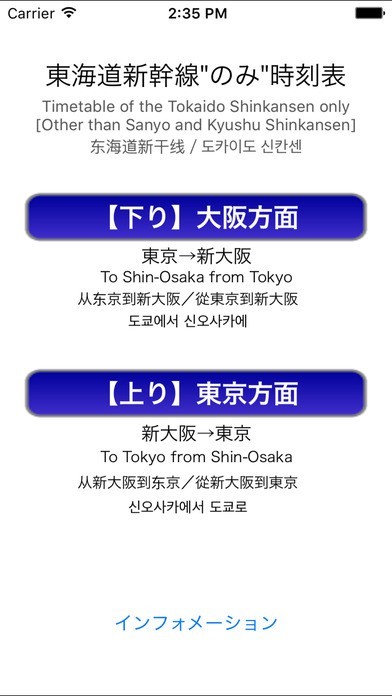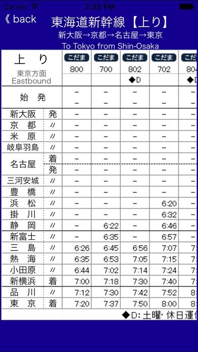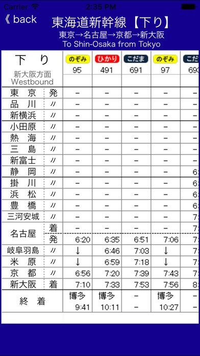 東海道新幹線"のみ"時刻表のスクリーンショット