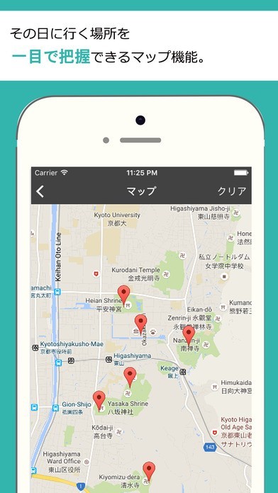 【その日に行く場所を一目で把握できるマップ機能】