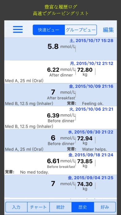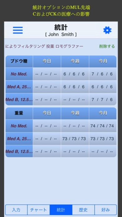 糖尿病患者さんに最適!統計画面を活用すればカテゴリーを分けて数値表示も可能!